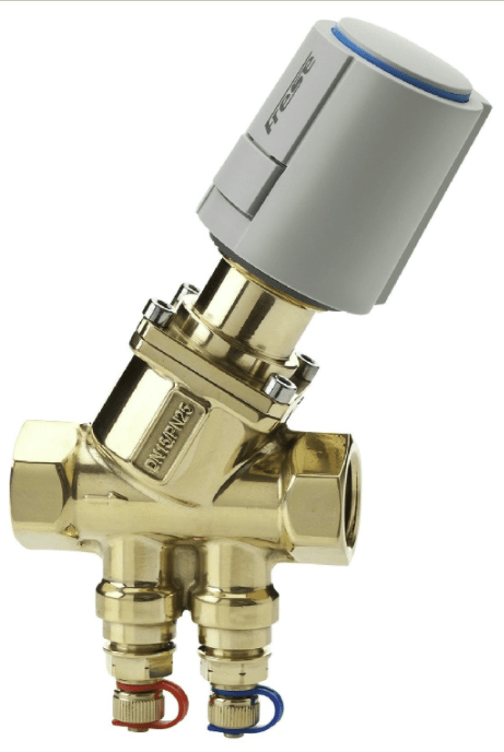 - Motorised on/off actuator for the 6-way valve and thermal 0-10 V modulating actuator with AC power supply and DC control signal for the dynamic motorised valve (PICV).